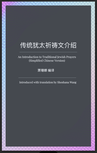 《传统犹太祈祷文介绍》用简体中文录有安息日的部分犹太祈祷文,是中文读者简单接触犹太祈祷的一个小册子。共149页。字体较大,留白较多,很方便学习和做笔记之用。数量有限。